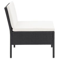 Fauteuils met tafel Poly rattan zwart. Creëer een aantrekkelijke en ontspannende plek waar je altijd al van gedroomd hebt met onze loungeset. Met deze modulaire tuinset kan je samen met familie en vrienden genieten van een ontspannen, zonnige middag of zomeravond!