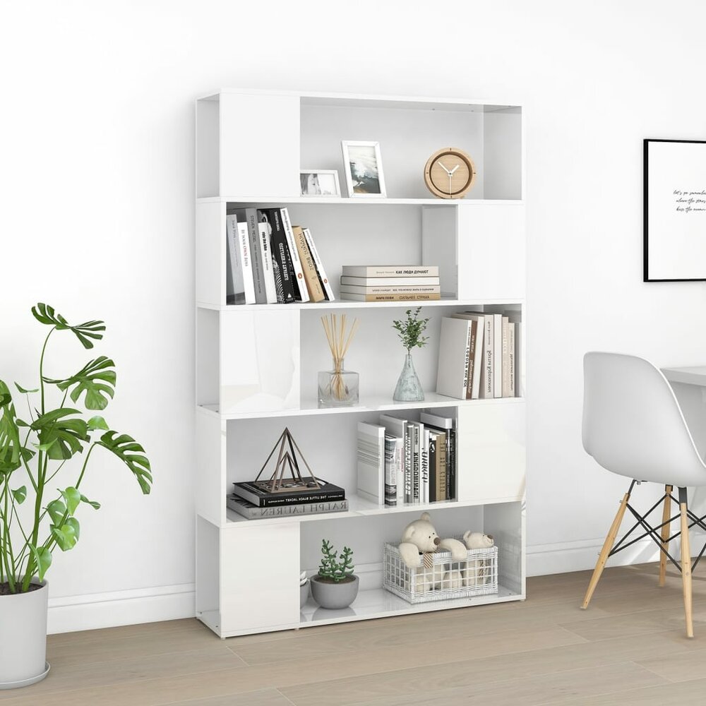 Boekenkast Roomdivider Bewerkt Hout Hoogglans Wit. Deze boekenkast, en tevens kamerverdeler, heeft een strak en klassiek ontwerp, waardoor hij een aantrekkelijke en praktische aanvulling op je interieur is.