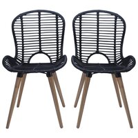 Eetkamerstoelen 2 st natuurlijk rattan zwart