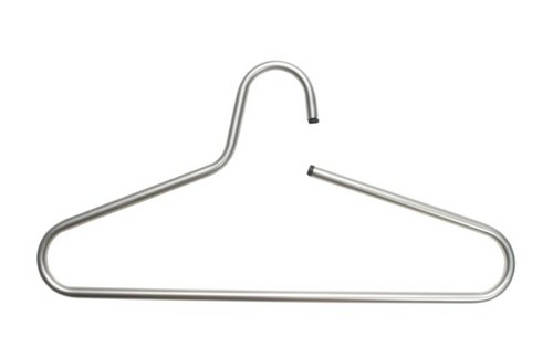 Kleerhanger metaal design RVS kleur heeft een mooie strakke en tijdloze vorm. Gemaakt van gematteerd en gelakt staal is het een sterke en funktionele kledingbeugel voor jassen en broeken. De design kleerhanger wordt geleverd in een set van 5 stuks