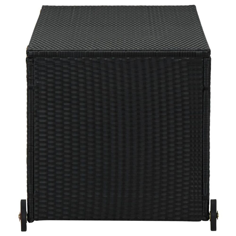 De box is gemaakt van duurzaam en weerbestendig poly rattan waardoor hij perfect is voor zowel binnen als buiten. Deze kussenbox is geschikt voor het opbergen van kussens, dekens, speelgoed en andere spullen. Het met olie afgewerkte houten handvat en de waterdichte binnenzak beschermen de inhoud tegen vocht. De kist is ontworpen met 2 wielen en een handvat aan de zijkant voor eenvoudige verplaatsing. Bovendien is hij gemakkelijk schoon te maken met een vochtige doek.
